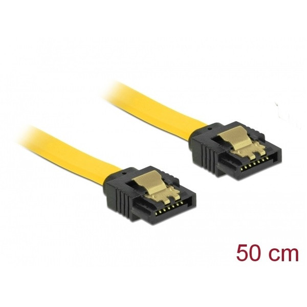 Delock Kábel - 82809 (SATA3, egyenes/egyenes csatl.(fémlappal), Max.: 6Gb/s, sárga, 0,5m)