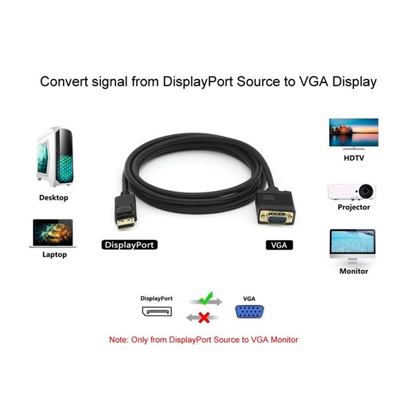 Equip Kábel - 119338 (DisplayPort to VGA, apa/apa, 2m)