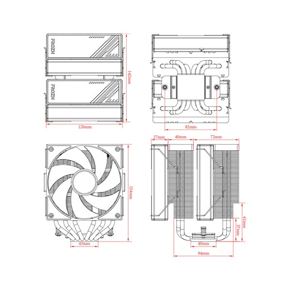 ID-Cooling CPU Cooler - FROZN A620 ARGB WHITE (29,9dB; max 132,52 m3/h; 4Pin csatlakozó, 6 db heatpipe, 2x12cm, PWM)