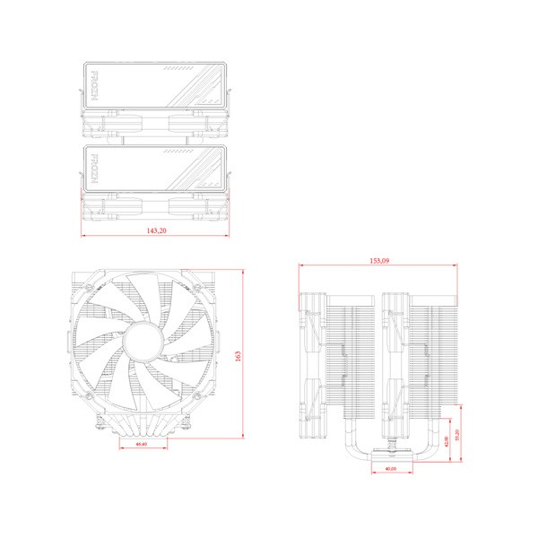 ID-Cooling CPU Cooler - FROZN A720 BLACK (33,5dB; max 167,52 m3/h; 4Pin csatlakozó, 7 db heatpipe, 2x12cm, PWM)