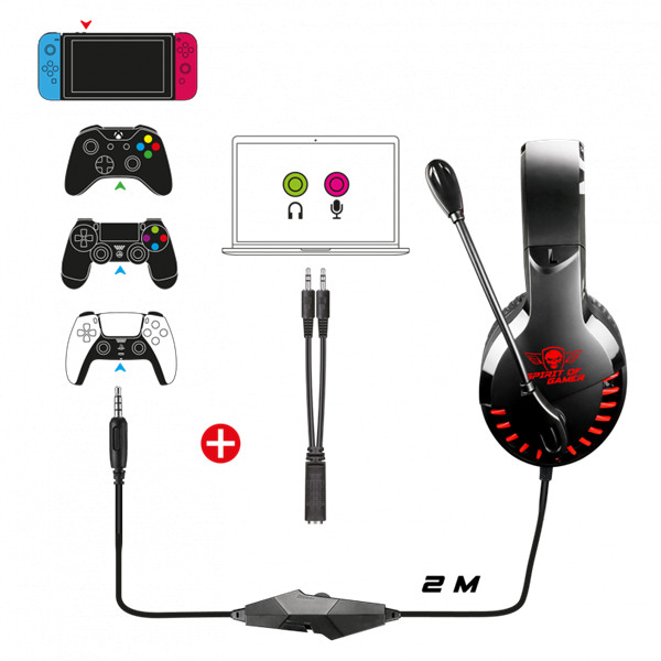 Spirit of Gamer Fejhallgató - PRO-H3 Red (MultiPlatform, mikrofon, 3.5mm jack, hangerőszabályzó, 2m kábel, piros)
