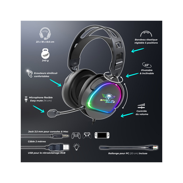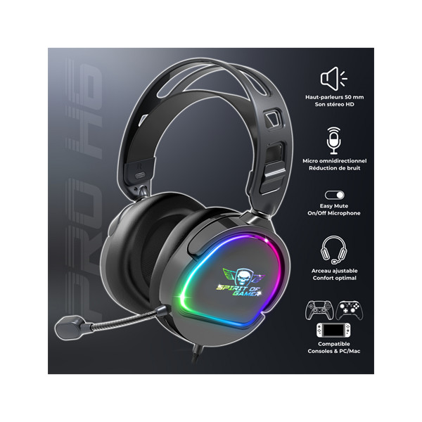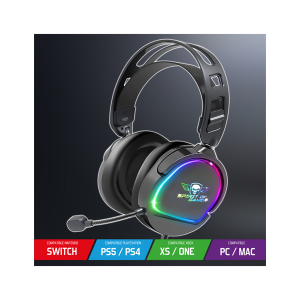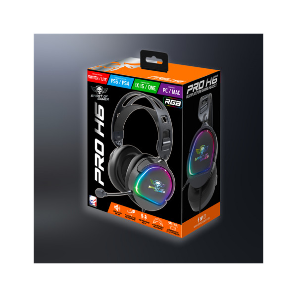 Spirit of Gamer Fejhallgató - PRO-H6 RGB Black (MultiPlatform, mikrofon, 3.5mm jack, hangerőszabályzó, 2m kábel, fekete)
