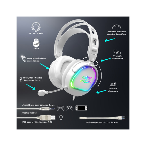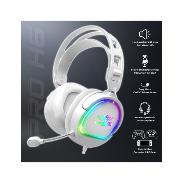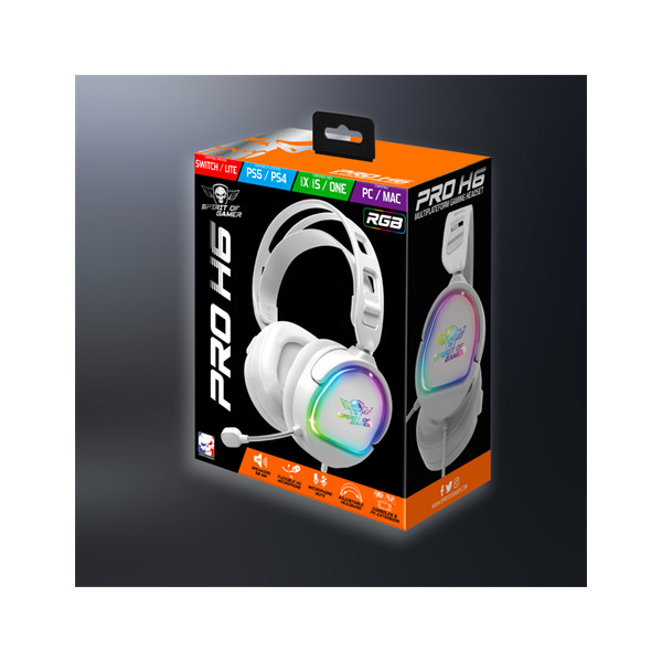 Spirit of Gamer Fejhallgató - PRO-H6 RGB White (MultiPlatform, mikrofon, 3.5mm jack, hangerőszabályzó, 2m kábel, fehér)