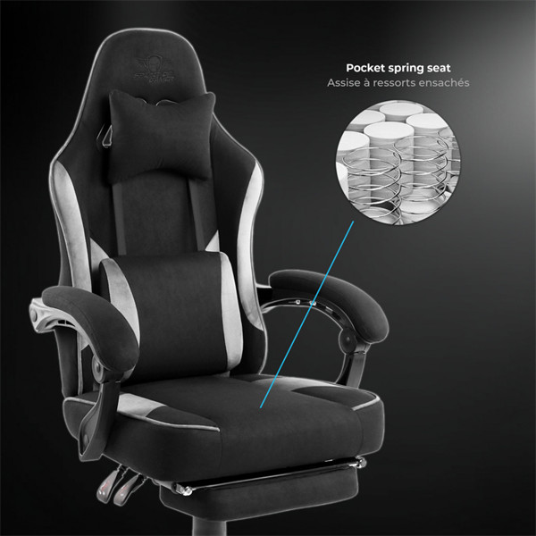 Spirit of Gamer szék - RAVEN (állítható dőlés/magasság; kihajtható lábtartó; max.120kg-ig, fekete)