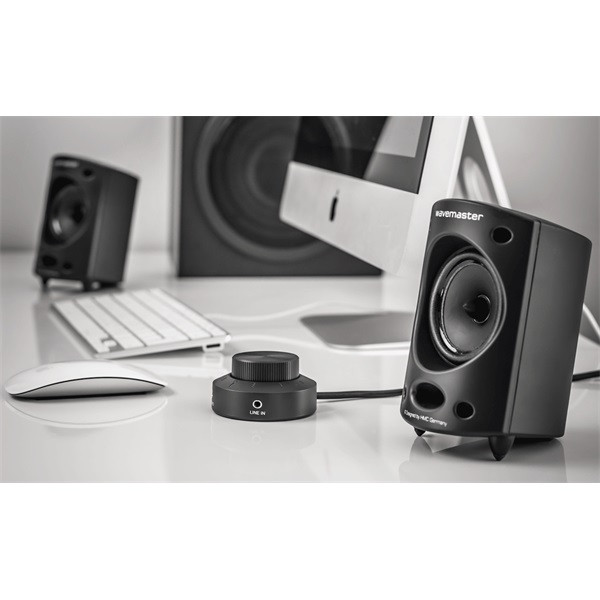 WaveMaster Hangszóró 2.1 - MOODY (65W RMS, Fa mélynyomó, 3,5mm jack, RCA, Fekete)