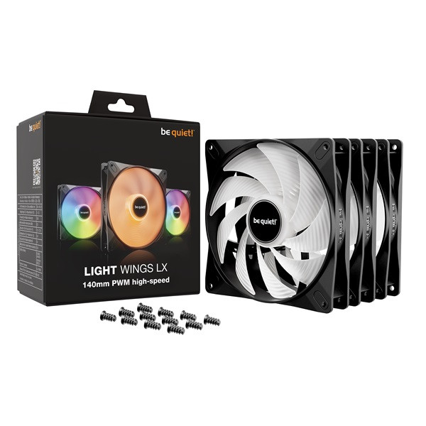 Be Quiet! Cooler 14cm - LIGHT WINGS LX 140mm PWM high-speed Triple-Pack (RGB, 1800rpm, 30,5dB, fekete)
